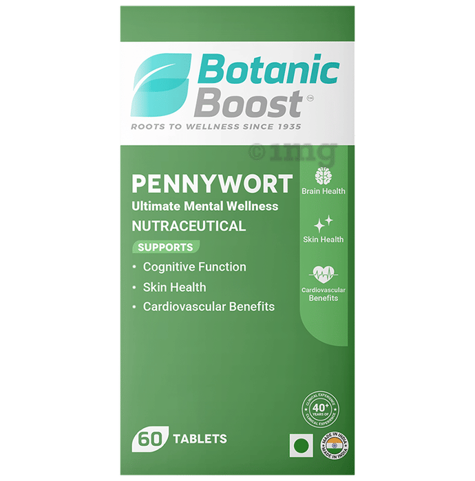 Botanic Boost Pennywort Tablet is a high-potency herbal supplement combining Centella asiatica (Pennywort) and Piper nigrum (Black Pepper Extract) to support cognitive function, stress balance, and skin health and delivering 730 mg of Pennywort and 20 mg of Black Pepper per serving.