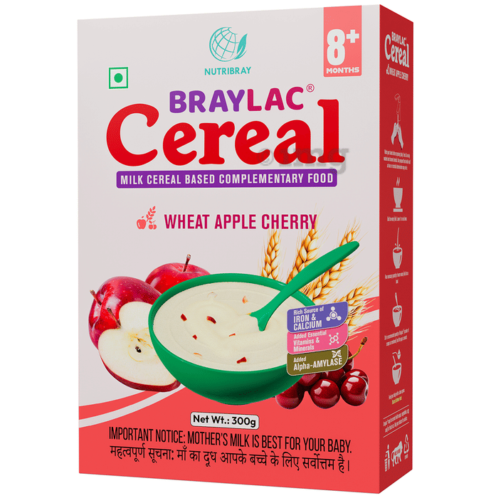 - BraylacWheat Apple Cereal is recommended for spoon feeding, in addition to milk feeds, after 6 months of age