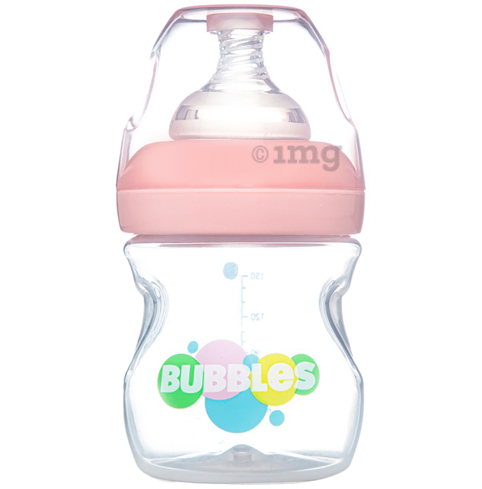 Bubbles PP Wide-Neck BPA Free Feeding Bottle (Pink 0+ Months) provides a safe and comfortable feeding experience for babies aged 6 months and above. Made from BPA-free polypropylene (PP), this bottle ensures safety while its anti-colic silicone nipple reduces colic and gas discomfort. The wide-neck design helps make cleaning and filling easier.