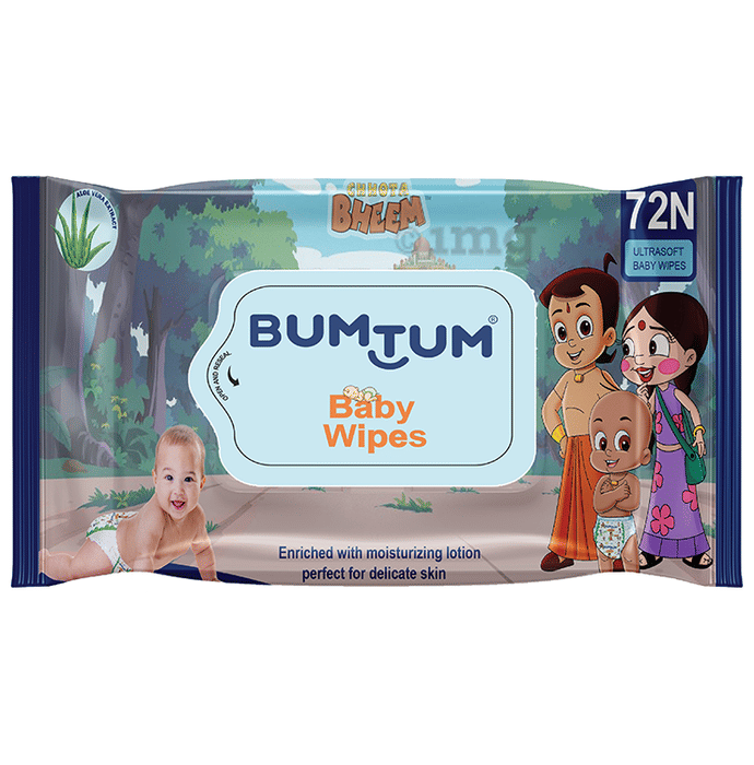 Bumtum Baby Wet Wipes are gentle and natural wet wipes containing no harsh chemicals. Baby skin can be cleaned with this product. These wipes are gentle and packed with goodness of aloe vera, chamomile extract, vitamin E and castor oil, which protects and nourishes the skin while preventing rashes. These wipes are manufactured with moisturising lotion which is suitable for delicate skin. The wipe's pleasant aroma keeps the baby fresh and happy all day without creating irritation.