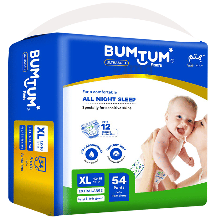 Bumtum Ultrasoft Baby Diaper Pants, Cottony Soft High Absorb Technology (54 Each) XL