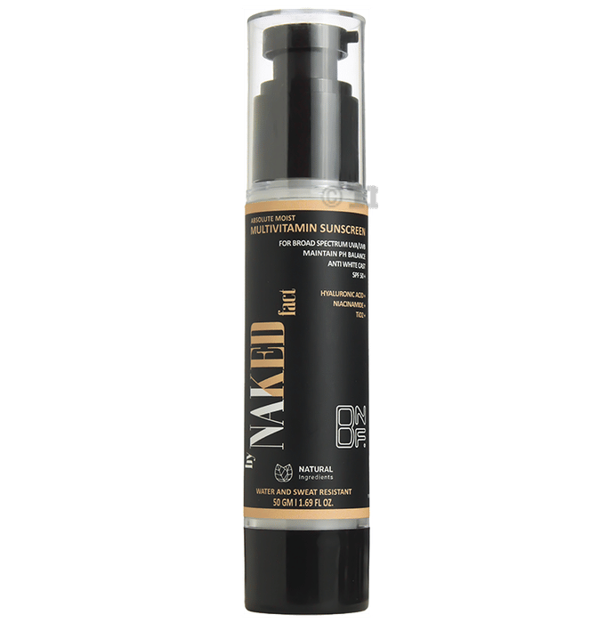 By Naked Fact Absolute Moist Multivitamin Sunscreen SPF 50+ is a lightweight, non-greasy sunscreen formulated with SPF 50+ for broad-spectrum UVA and UVB protection. Enriched with hydrating and nourishing ingredients, it can help manage sunburn and may assist in maintaining skin moisture balance. The sunscreen is water- and sweat-resistant, making it suitable for both indoor and outdoor use without leaving a white cast.