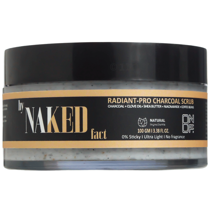 By Naked Fact Radiant-Pro Charcoal Scrub is a skincare formulation developed for exfoliation and surface purification. It contains a blend of activated charcoal, niacinamide, walnut shell powder, and botanical emollients. Charcoal can help lift away surface toxins, dirt, and impurities. Niacinamide supports skin clarity and smooth texture, while walnut shell powder gently exfoliates dead skin cells. Combined with shea butter, aloe vera, and coconut oil, the formulation supports skin hydration and post-cleanse comfort.