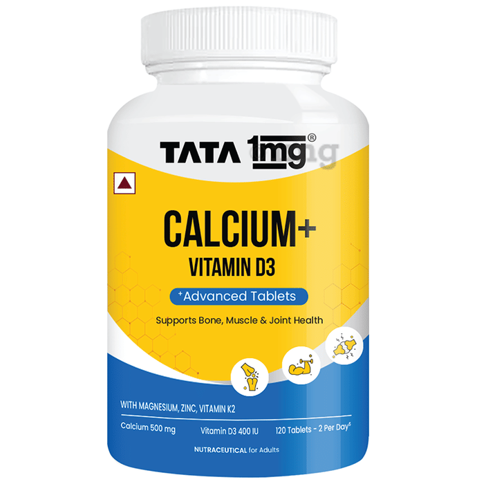 Tata 1mg Calcium + Vitamin D3, Zinc, Magnesium and Alfalfa Tablets for Joint Health & Immunity It is a dietary supplement formulated with calcium citrate, vitamin D3, vitamin K2, alfalfa, magnesium and zinc that fulfils nutritional needs and supports bone, joint and muscle care. It may help in muscle contraction, muscle building and flexibility of joints. Vitamin D3 may help improve bone health.