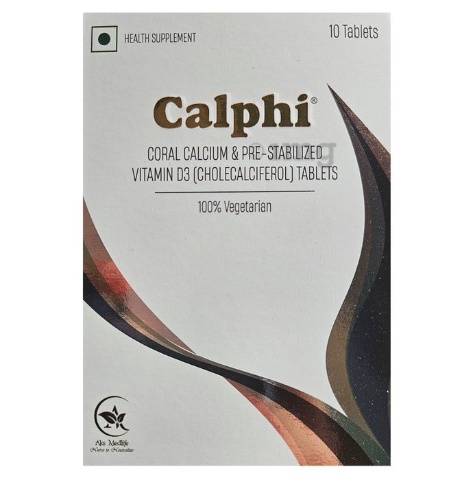 Calphi Tablet is a vegetarian health supplement thoughtfully developed to support bone mineral density and skeletal strength. Each tablet delivers a combination of coral calcium—rich in bioavailable elemental calcium—and stabilised vitamin D3 (cholecalciferol), which can help in calcium absorption and bone nourishment. These nutrients can contribute to the maintenance of healthy bones, general cellular functions, and overall vitality when combined with a balanced diet and healthy lifestyle. With a precise formulation designed around nutritional needs, this supplement can support optimal calcium metabolism while contributing to general bone vitality and muscular wellness. It can be a suitable addition to a balanced lifestyle for individuals seeking dietary support for skeletal health, especially in times of deficiency or increased nutritional demand.