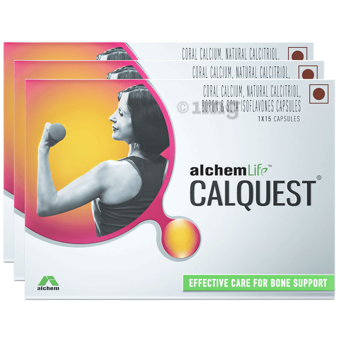 Calquest Capsule/ Effective Care For Bone Support is designed to help support bone health, especially beneficial for those experiencing calcium deficiency. With a unique blend of Coral Calcium, Isoflavones, and Vitamin D3, CalQuest can help maintain healthy calcium levels and promotes bone density. This Ayurvedic-inspired nutraceutical formulation, using advanced PhytoAdvance technology, is ideal for managing bone wellness and supporting bone structure naturally. Each capsule is crafted to deliver essential nutrients that may assist in calcium absorption, promoting overall skeletal health.