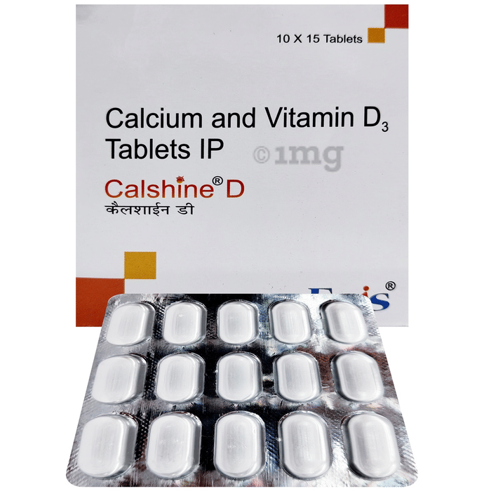 Calshine D tablet contains Calcium and Vitamin D3 which are important for bone health and calcium level maintenance.
