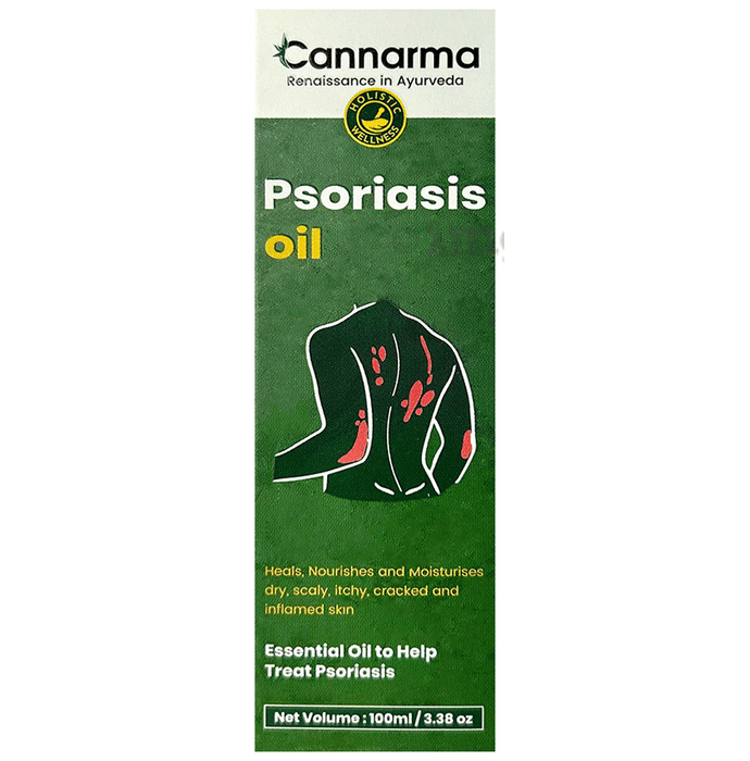 Cannarma Psoriasis Oil is a specially formulated Ayurvedic oil designed to support skin nourishment and moisturisation. This oil may help condition dry, scaly, itchy, cracked, and inflamed skin. The therapeutic properties of this oil, derived from a blend of potent ingredients like hemp seed oil, coconut oil, and extracts of turmeric, neem, giloy, and amla, may help soothe skin while also promoting skin conditioning. This ayurvedic formulation is suitable for external use and offers a natural option for skin care.
