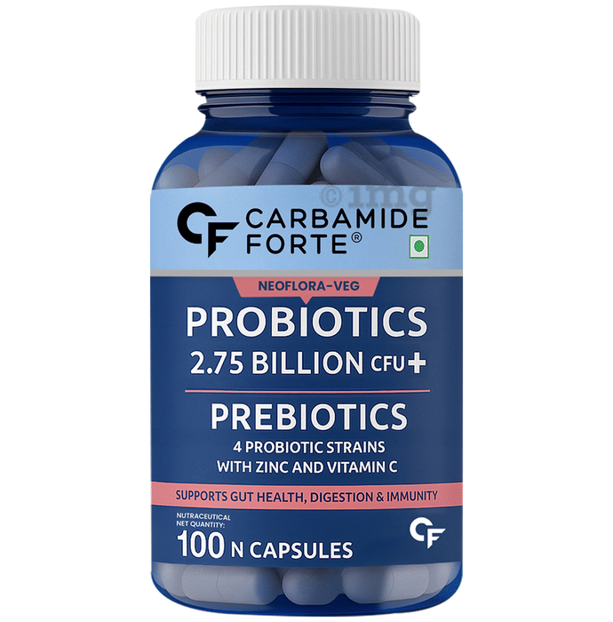 Carbamide Forte Probiotics 2.75 Billion cfu + Prebiotics 100mg Vegetarian Capsule is a health supplement containing a probiotic profile to help fight the bad bacteria and ease digestive distress. It is designed to provide relief from bloating and gas pain. It helps boost the immune system and balance the good bacteria in the gut. The capsules do not require refrigeration and can be stored on the shelf.