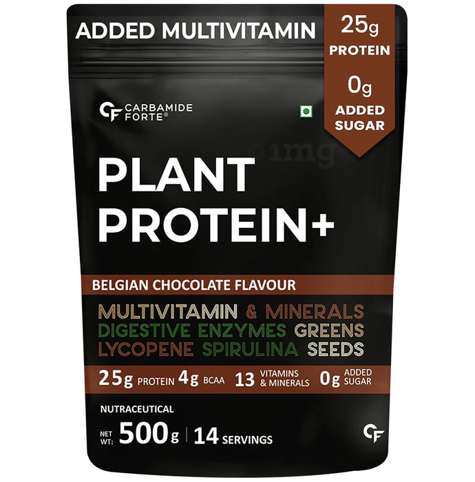 Carbamide Forte Vegan Protein+ with Multivitamins | No Added Sugar | Flavour Powder Belgian Chocolate