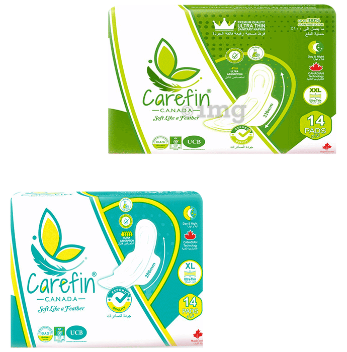 Carefin Combo Pack of Ultra Thin Sanitary Napkins (14) XL & (14) XXL