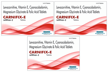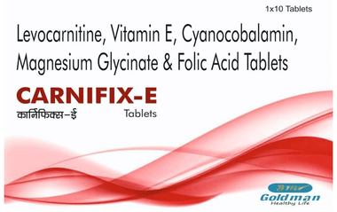 Carnifix-E Tablet are formulated with Levocarnitine, Vitamin E, Cyanocobalamin, Magnesium Glycinate, and Folic Acid to support daily nutritional requirements. This combination may help contribute to cellular energy processes and assist in maintaining essential vitamin and mineral levels. The inclusion of Vitamin E offers antioxidant properties, while Cyanocobalamin and Folic Acid can help support daily nutritional balance. These tablets are designed for convenient integration into a daily routine, with a focus on essential nutrients.