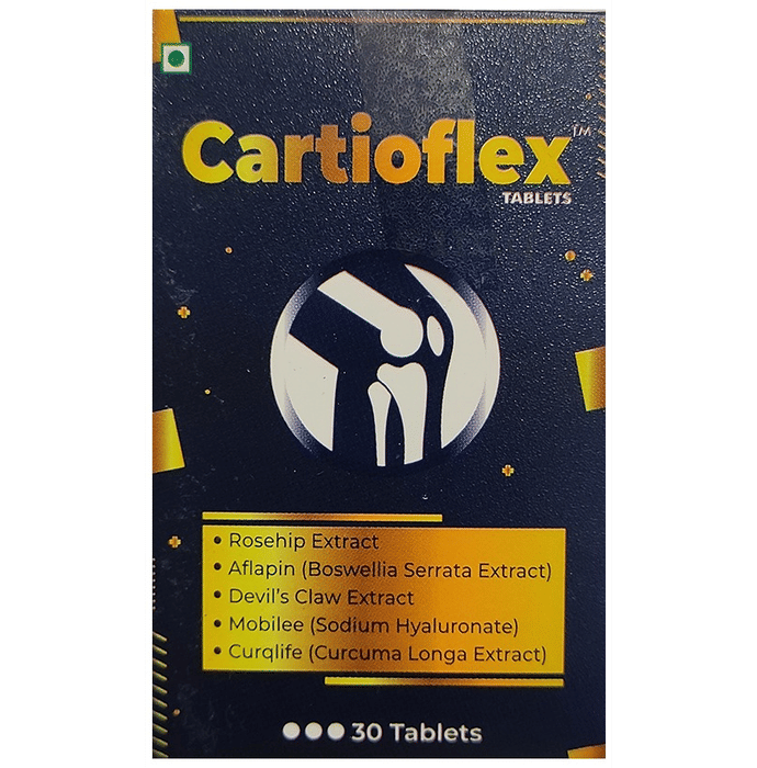 Cartioflex Tablet is a bone and joint health supplement that may support bone and joint wellness. It may support joint movement and flexibility and contribute to cartilage lubrication.