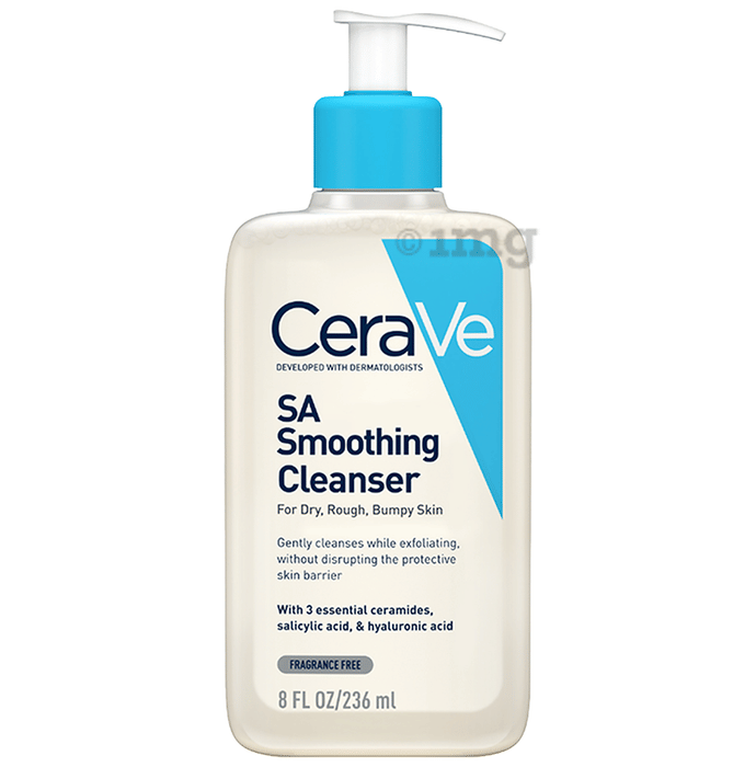 CeraVe SA Smoothing Cleanser Fragrance Free is a gel-based formulation developed with dermatologists to help support the gentle cleansing of dry, rough, and bumpy skin. With a combination of salicylic acid, hyaluronic acid, and three essential ceramides, this formula works to clean the skin while helping exfoliate surface buildup. It is designed not to disrupt the skin’s natural barrier, making it appropriate for sensitive skin types. This cleanser may assist in washing away impurities while providing a smoother skin feel with regular use. The non-comedogenic, hypoallergenic, and fragrance-free formulation makes it gentle for daily use across various skin types. Suitable for both face and body, this product may assist in maintaining basic hygiene without harsh abrasives.