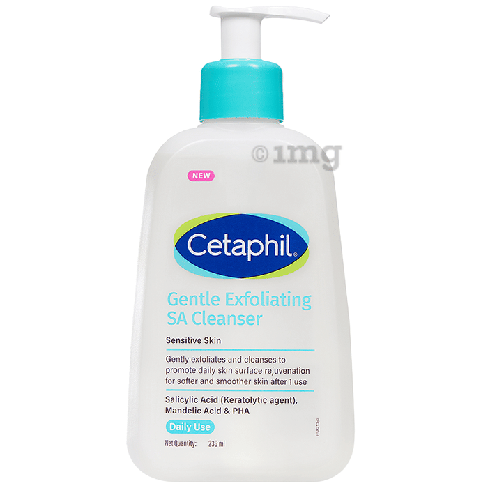Cetaphil Gentle Exfoliating SA Cleanser Sensitive Skin is a foaming gel-based cleanser formulated for sensitive skin. It combines salicylic acid (a keratolytic agent), mandelic acid, and PHA with skin-conditioning ingredients like glycerin, niacinamide, and sunflower seed oil. The cleanser can help gently exfoliate and cleanse the skin to remove pore-clogging buildup, dead skin cells, and impurities while maintaining the skin’s natural moisture barrier. With daily use, it may help improve skin tone and texture, leaving the skin looking smoother and healthier.