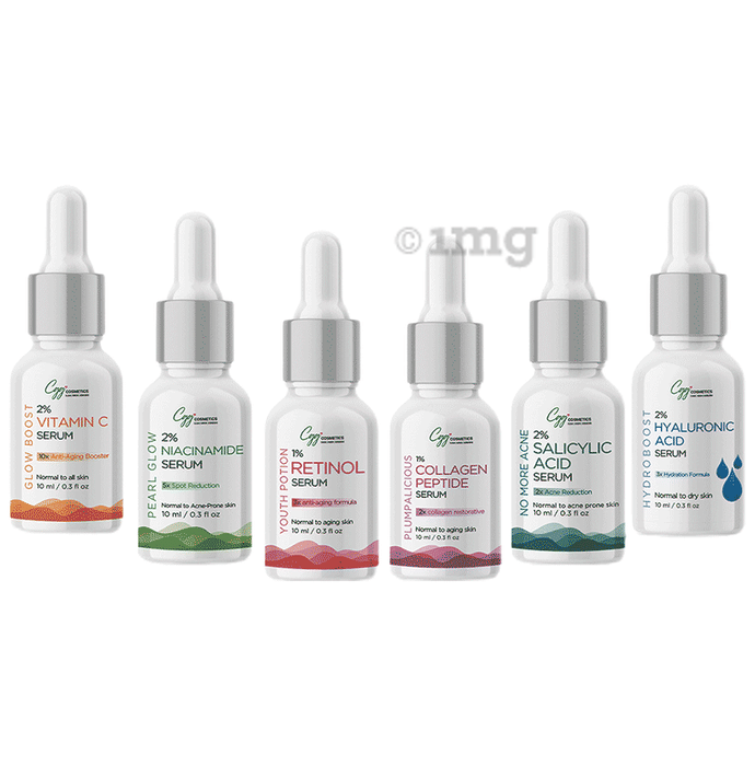 CGG Cosmetics Combo Pack of 2% Vitamin C, 2% Hyaluronic, 2% Niacinamide,1% Retinol, 2% Salicylic, 1% collagen Serum