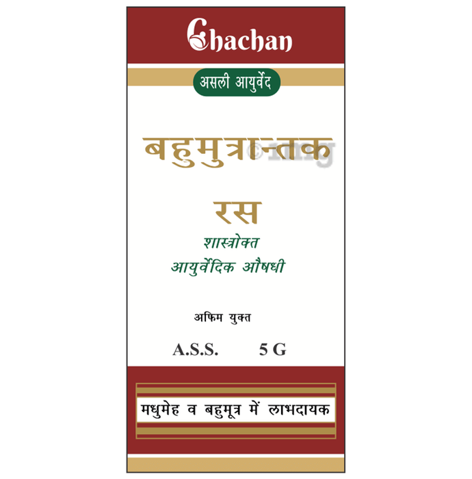 Chachan Bahumutrantak Ras Tablet is an Ayurvedic medicine, with herbal and mineral ingredients, in tablet form. This medicine is formulated based on the Kerala Ayurveda principle and should only be taken strictly under medical supervision.