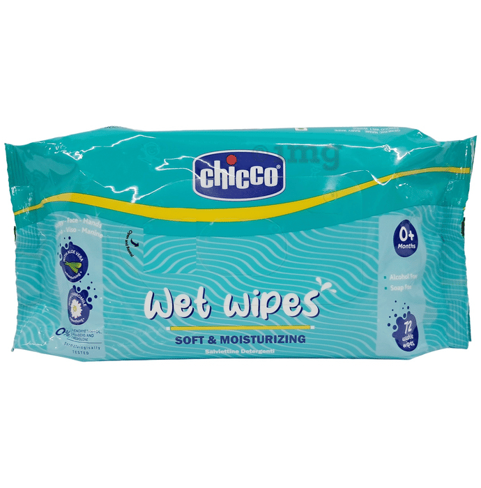 Chicco Wet Wipes Soft & Moisturizing is used for cleaning your babys sensitive skin. These gentle, all-natural, superior cloth wipes safely care for your babys skin from head to toe, leaving no mess behind. These wet baby wipes are infused with aloe veras moisturising properties and chamomiles hydrating and soothing properties. It has 0% phenoxyethanol, paraben and tropolone. It is also free from soap and alcohol.