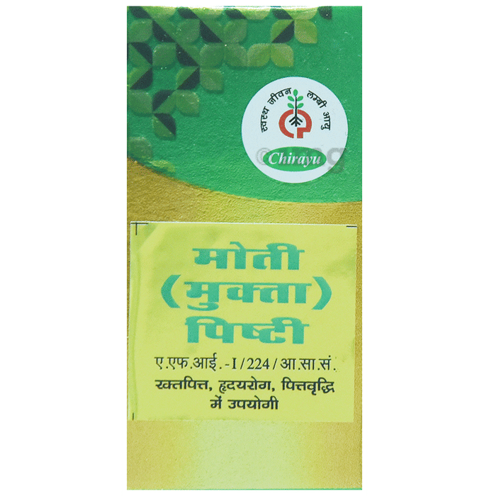 Chirayu Moti (Pearl) Pishti is a traditional Ayurvedic formulation derived from purified pearls. It is known for its potential to help support skin health, digestive processes, and emotional well-being. Moti Pishti is traditionally used in Ayurveda to promote a healthy complexion and address various skin concerns. It is also valued for its potential role in regulating digestive health, supporting metabolism, and aiding in nutrient absorption. Furthermore, it is regarded for its calming properties, which may help balance emotional states and promote relaxation.