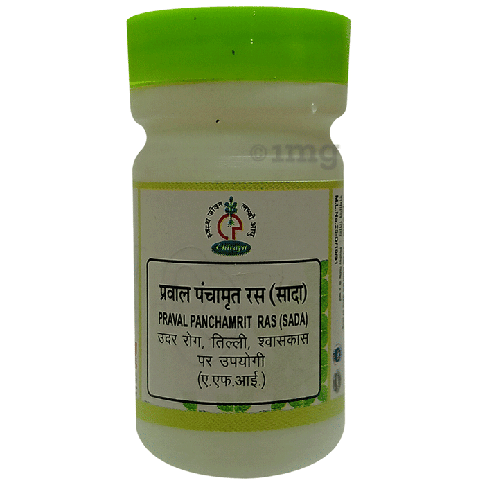 Chirayu Praval Panchamrit Ras (Sada)is a herbomineral ayurvedic formulation that help deal with digestive disorders. It is beneficial in balancing aggravated pitta dosha due to its cooling property and hence finds it beneficial in the majority of diseases arising due to vitiated Pitta dosha. It can also give strength to the brain and heart.