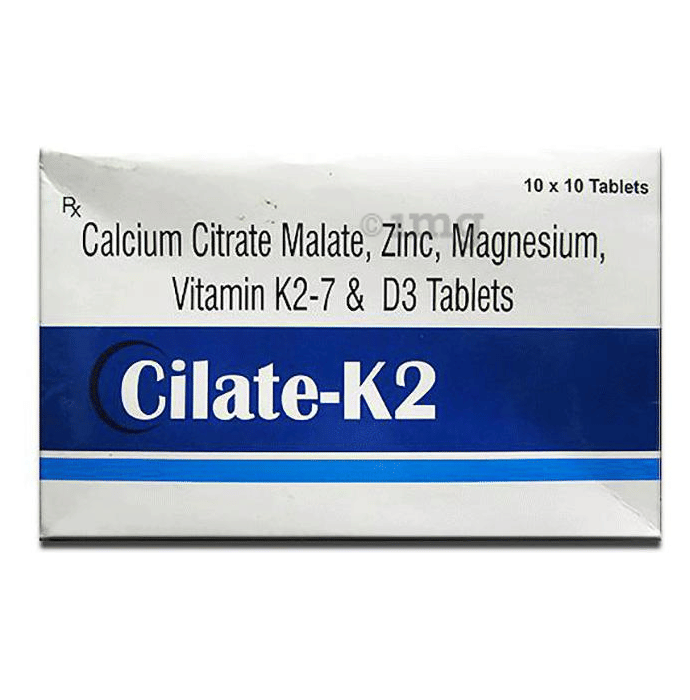 Cilate-K2 Tablet is a health supplement that contains a synthetic vitamin D analogue. It is primarily used for low levels of calcium in the blood. It helps in the proper absorption and utilization of calcium in the body.