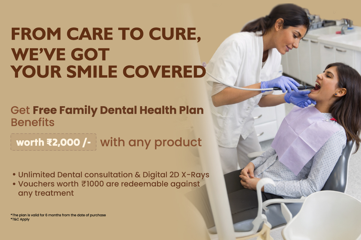 - FAMILY DENTAL HEALTH PLAN: GET FREE family Dental Health Plan worth Rs. 2000/- with every purchase. valid for 6 months from date of purchase. Scan the QR and complete your details