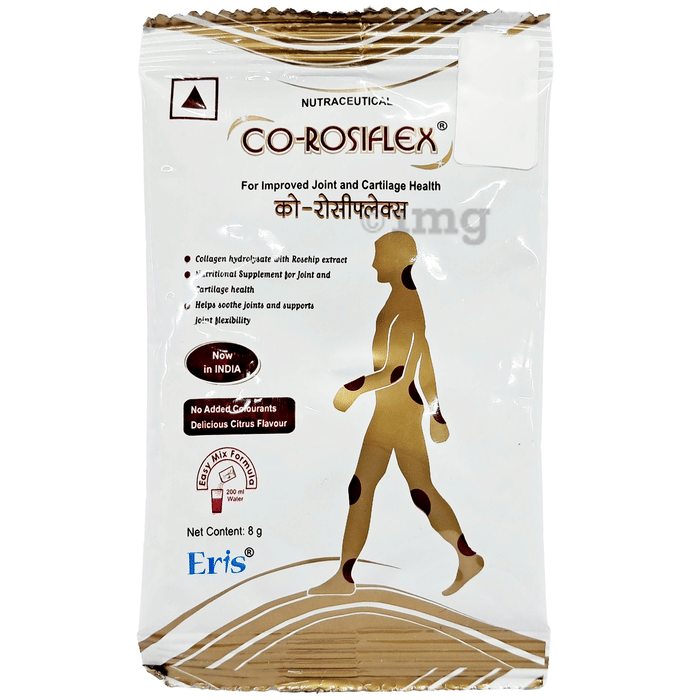 CO-Rosiflex Sachet has synergistic action of its special blend of collagen and rosehip extract acts through two powerful modes of action-stimulation of cartilage tissue production and anti-inflammatory action. Co-Rosiflex thus, not only tackles pain, stiffness and inflammation but also helps in managing the underlying damage in the joints of osteoarthritis. This makes Co-Rosiflex the product of choice for the maintenance of joint health in arthritic patients.