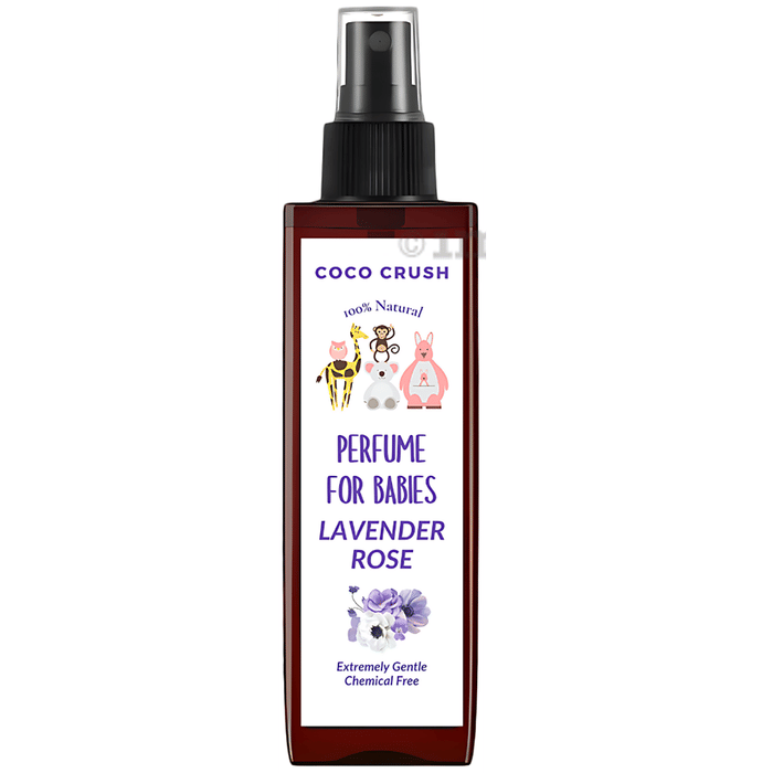 Coco Crush Perfume for Babies Lavender Rose is a natural fragrance designed for babies’ delicate needs. Enriched with the calming essence of Lavender and Rose essential oils, this gentle spray can help deliver a refreshing, long-lasting scent without harsh chemicals or preservatives. It offers a soft, floral touch of nature to the baby's clothing, ideal for daily freshness and a calming sensory experience. The alcohol-free, non-irritating formula is safe for infants and may ensure peace of mind for parents while helping elevate the baby’s day with a subtle aromatic embrace.