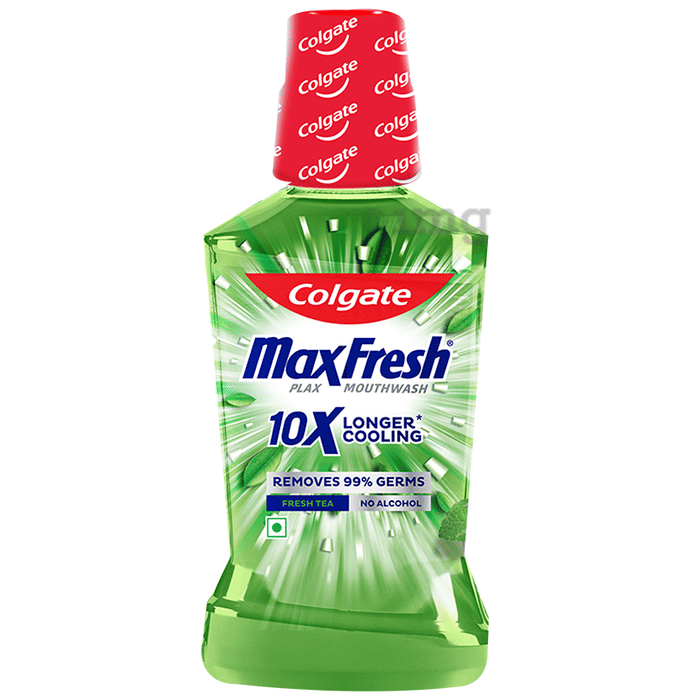 Colgate MaxFresh Plax Mouth Wash Fresh Tea removes over 99% of germs that cause bad breath and cavities, giving you a fresher and cleaner mouth than brushing alone. It has natural tea extracts that provide you with a refreshingly pleasant aroma. This mouthwash contains no alcohol (non-alcoholic) hence does not cause any burning sensation when you use it. Yet it removes 99% of germs instantly. You will experience an instant blast of freshness and a 10X longer cooling sensation compared to brushing alone. This mouthwash gives you 24/7 control over bad breath with regular use.