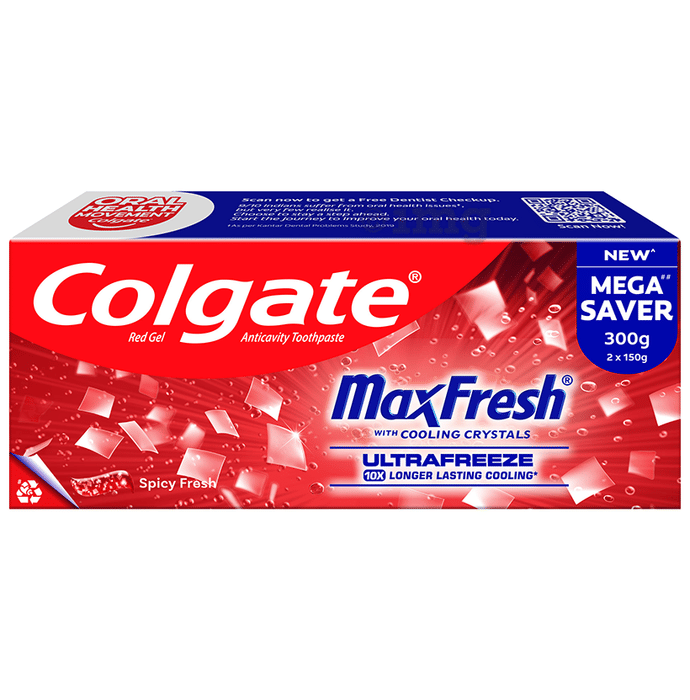 Colgate Maxfresh with Cooling Crystals Anticavity Toothpaste Mega Save Pack (150gm Each) Spicy Fresh Red Gel Switch on the power of freshness with Colgate Maxfresh toothpaste that refreshes you and helps you seize the day because every morning is a fresh start. The Red gel toothpaste contains unique cooling crystals that give you intense cooling while you brush. Colgate is India’s most trusted oral care brand. As a trusted partner, we are committed to doing business with integrity and respect for all people and the world around you. Colgate offers quality oral care products, including toothpaste and toothbrushes and expert dental health information. Colgate toothpaste is always 100% vegetarian and gluten-free. We care about our environment, Colgate India is the nations first to earn actual zero waste platinum certification for all its four manufacturing sites in India, from Green Business Certification Inc. (GBCI). This toothpaste is made in India, with the highest quality standards.