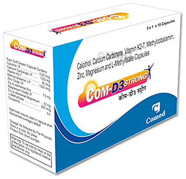 Com D3 Plus Capsule is a bone health supplement formulated with calcium and calcitriol which can help increase bone and teeth strength, improve calcium absorption, and enhance immune function. The ingredients work together to support bone health and improves overall wellness.