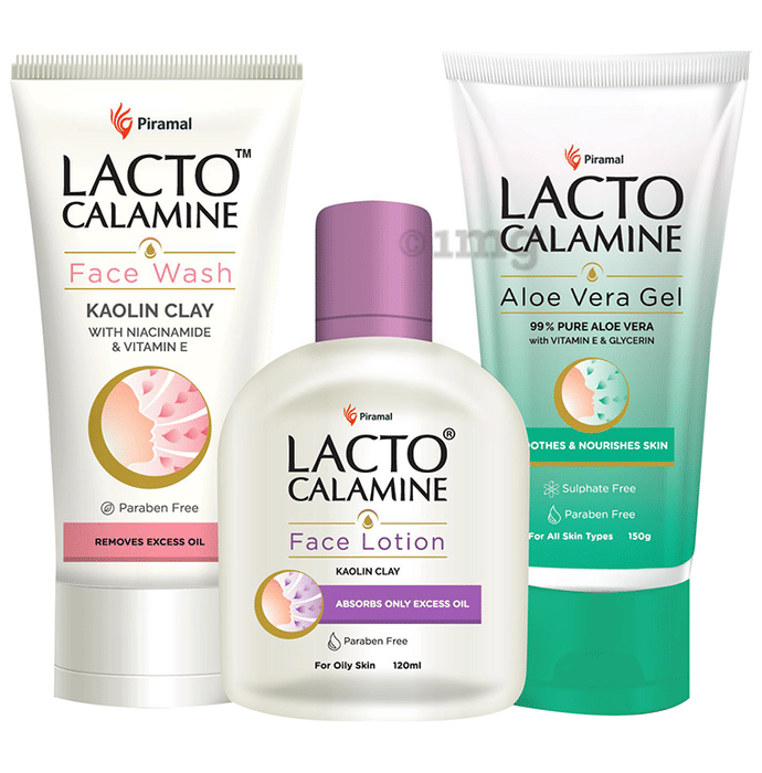 Information about Combo Pack of Piramal Lacto Calamine Face Wash 100ml, Lacto Calamine Face Lotion for Oily Skin 120ml & Lacto Calamine Aloe Vera Gel 150gm