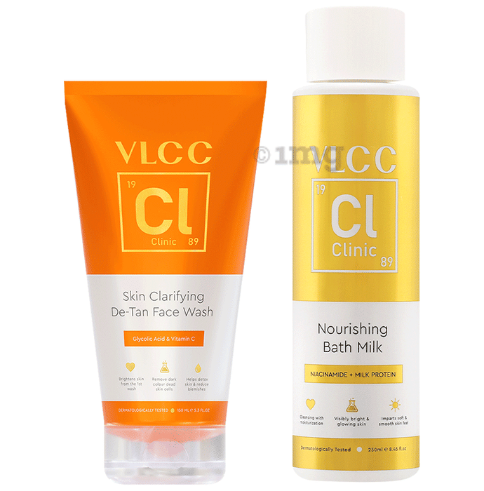 Combo Pack of VLCC Clinic Skin Clarifying De-Tan Face Wash (150ml) & Nourishing Bath Milk (250ml)