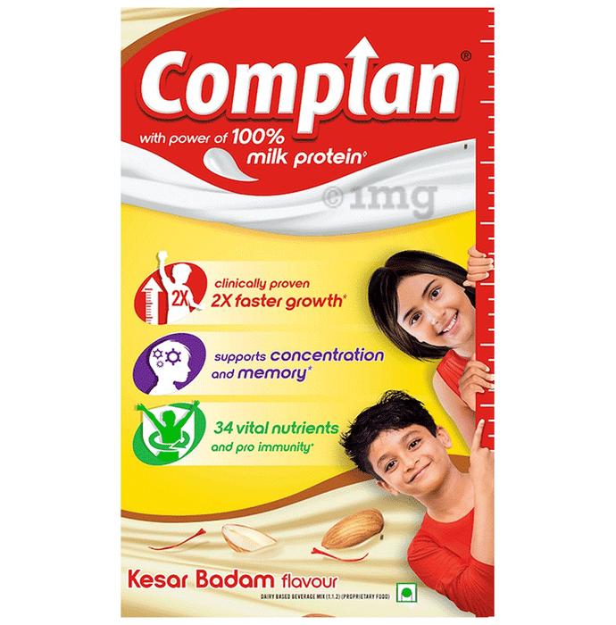 Complan is a ‘Dairy-based Beverage Mix’, drink powder scientifically designed to meet the nutritional needs of growing children. Its kesar badam flavour is a drink with a delicious taste the kid will enjoy. It provides essential nutrients, including 100% milk protein, vital for their development. Complan contains up to 63% more protein (per 100g and serve basis). Its formulation with 34 key nutrients, such as vitamin D2, calcium, zinc etc., is designed to provide nutrition. Serve this delight twice daily (33g x 2) as a part of your child’s balanced diet. It can be served in two delicious ways, both as a hot drink and a cold drink.