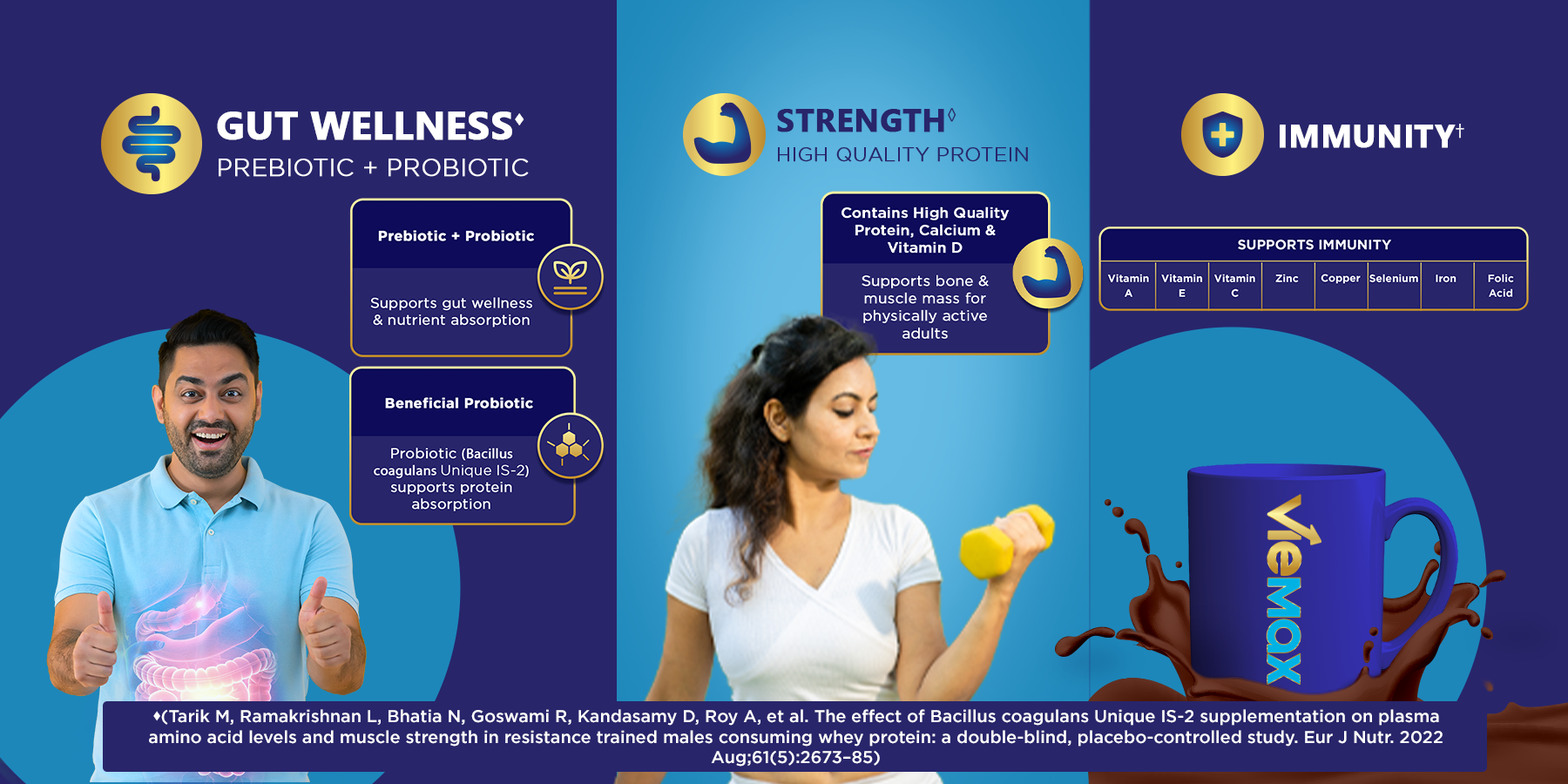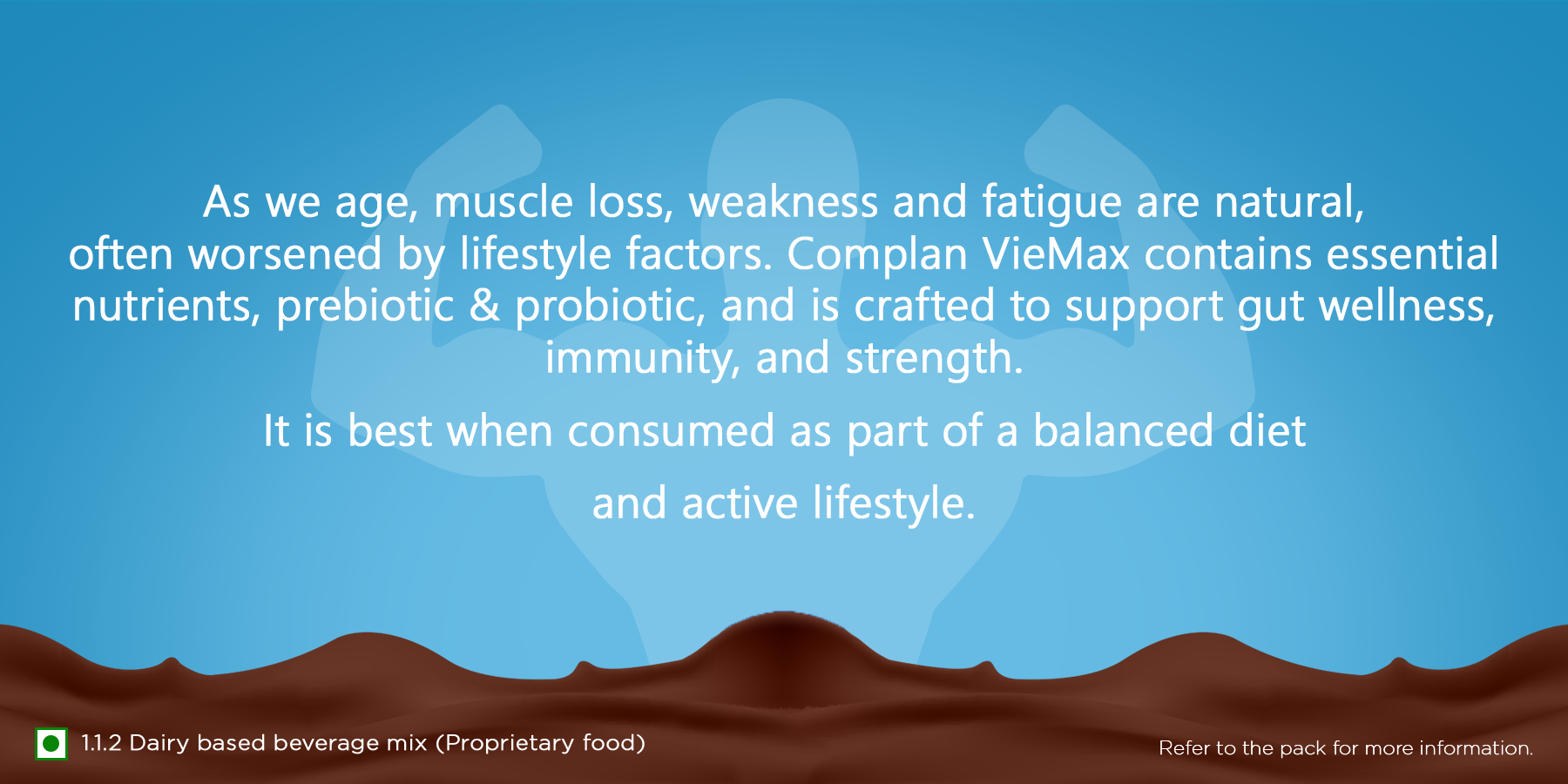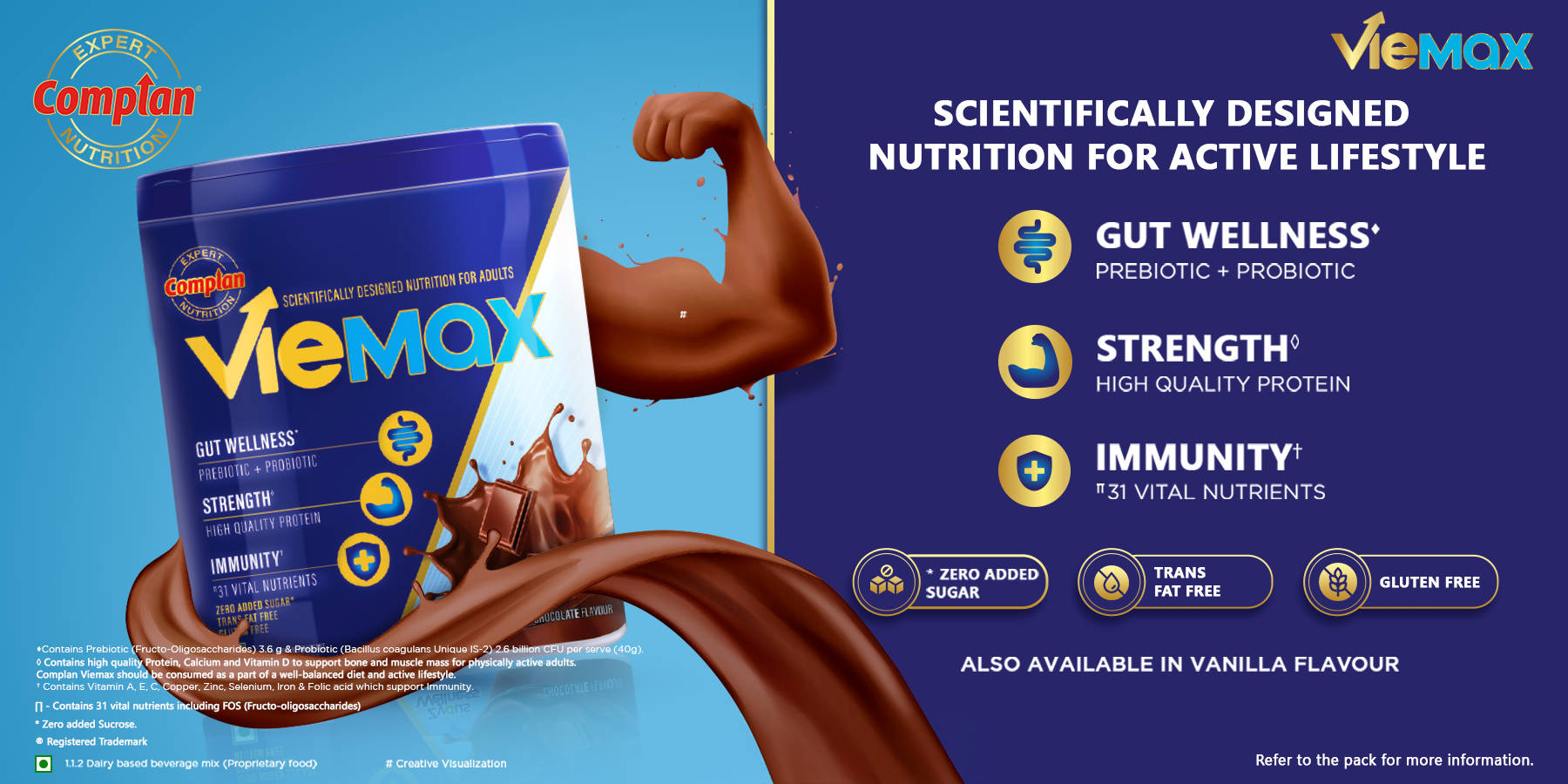 Complan Vie Max Vanilla is a vanilla flavoured scientifically formulated nutrition supplement for adults. It combines high-quality protein with the added benefits of prebiotics (Fructo-Oligosaccharide) and probiotics (Bacillus coagulans Unique IS-2) to support strength and gut wellness. With 31 vital nutrients, zero added sugar, and no trans fats, it’s an ideal beverage for immunity support, strong bones, and overall wellness.