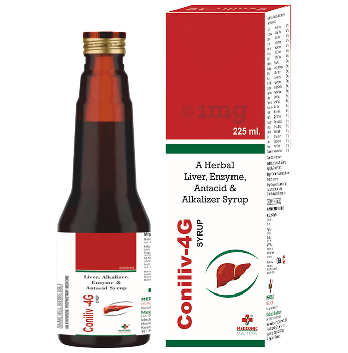 Coniliv 4G Syrup is an ayurvedic proprietary liquid formulation developed with a comprehensive blend of hepatoprotective, digestive, and detoxification-oriented botanicals. The formulation includes Kutki, Kalmegh, Bhumyamalaki, Kasni, Punarnava, and Guduchi—herbs that may help support liver function, bile regulation, and metabolic balance. Supporting ingredients such as Haritaki, Vidang, Mulethi, and peppermint contribute to digestive comfort and enzymatic activity. When used as directed, the syrup supports liver nourishment, digestive efficiency, and internal cleansing processes.