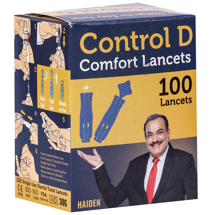 Control D Comfort Lancets Testing blood glucose is an essential part of managing diabetes. Lancets are used to poke the finger to draw out blood for blood glucose level testing. This pack of lancets help measure blood glucose levels quickly, accurately, and comfortably. The ergonomic design makes using the lancets easy and comfortable.