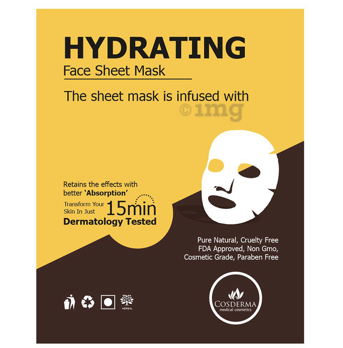 Cosderma Hydrating Face Sheet Mask is designed to make the skin soft and supple. Formulated with hyaluronic acid, it supports the skin's moisture level while imparting a healthy glow.