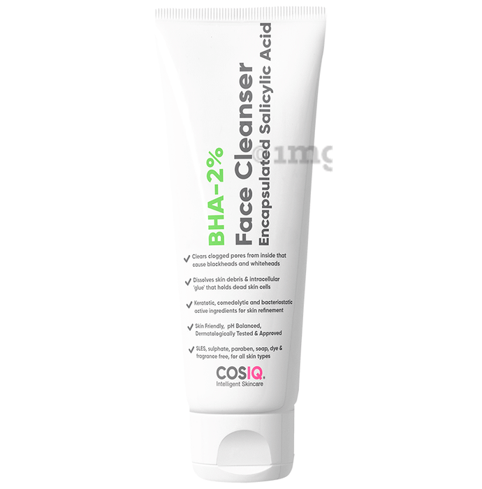 Cosiq BHA 2% Face Cleanser is a gentle, soap-free formulation designed for deep pore cleansing. It contains 2% Salicylic Acid, a Beta Hydroxy Acid (BHA) that may help exfoliate the skin surface and clarify pores by dissolving buildup and dead skin layers. This lightweight, non-irritating cleanser is crafted to support skin clarity while maintaining hydration and barrier comfort. Ideal for oily or combination skin types, it leaves the skin feeling fresh and balanced without tightness or residue.