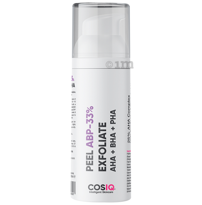 Cosiq Peel ABP 33% Face Serum is a strong exfoliating blend crafted to support intensive exfoliation and deep pore cleansing. It combines 25% AHA, 2% BHA, and 6% PHA to support surface renewal and help refine skin texture. While AHAs can assist in removing surface build-up, BHA may help in cleansing impurities, and PHA can help offer added hydration and mild exfoliation. The formulation also contains Aloe Vera, botanical fruit extracts, and moisturisers for a balanced exfoliation experience. Suitable for periodic use in advanced exfoliation routines.