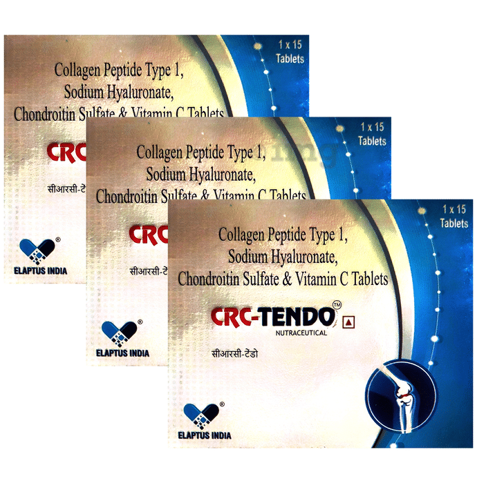 CRC-Tendo Tablet is a supplement that may support joint and tendon health by supplying key structural nutrients. It combines Chondroitin Sulfate, Collagen Peptide Type I, Sodium Hyaluronate, and Vitamin C, which may help in maintaining the strength, elasticity, and lubrication of joints and connective tissues. This formulation can be particularly beneficial for individuals experiencing joint stress due to ageing, physical activity, or degenerative conditions.