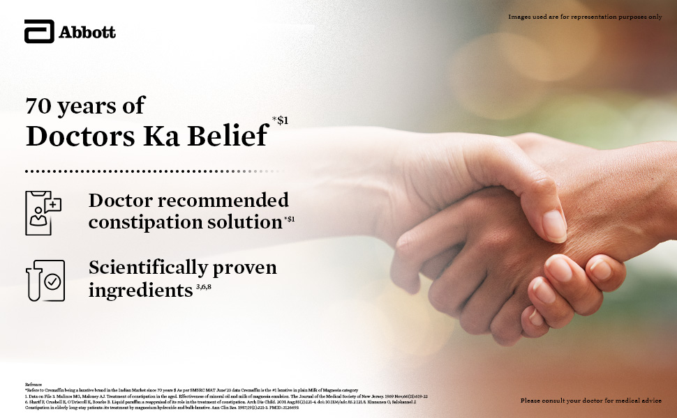 It contains liquid paraffin and milk of magnesia as the active ingredients. The milk of magnesia works by drawing water into the intestine through osmosis. The presence of liquid paraffin is responsible for the lubricating properties which help in retaining water and fat in the stools. This helps to ease bowel movement and aids in smooth defecation. It is available in 225ml & 450ml bottles in mixed fruit and mint flavors.