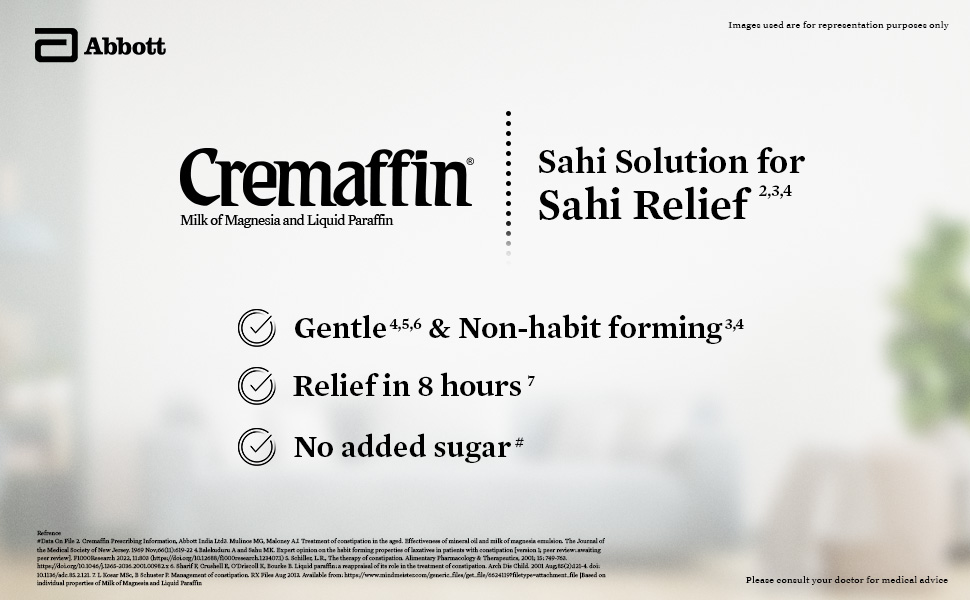Cremaffin syrup works by drawing water into the intestine through osmosis. It is also responsible for retaining water and fat in the stools which helps to ease bowel movement and aids in smooth defecation. It usually takes 6-12 hours for the medicine to work.