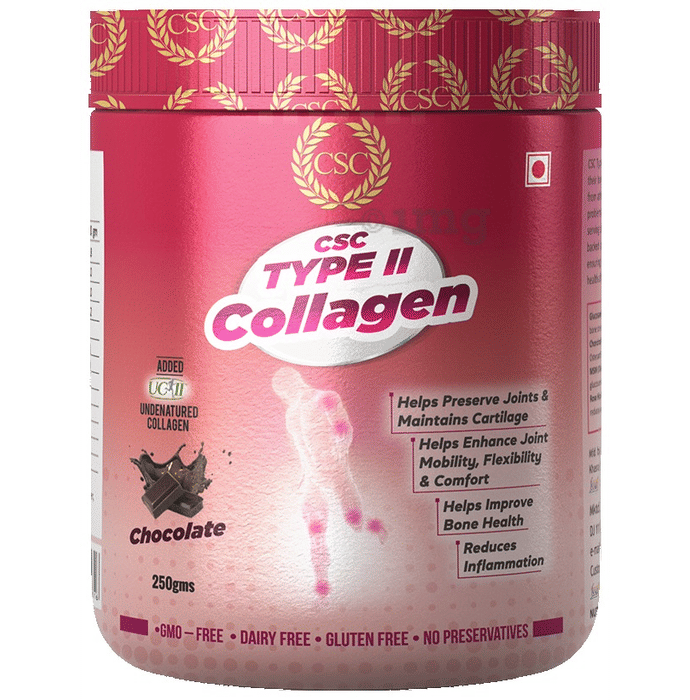 CSC Type II Collagen is a product specially formulated for a wide range of individuals that face issues with their bone and joint health at various stages of life. The product will benefit everyone from athletes suffering from various grades and types of sports injuries to elderly people facing problems such as osteoarthritis, osteoporosis, lack of lubrication in joints, and many more. Each serving of the CSC Type - II Collagen Blend offers 40 mg of UC - II Undenatured Collagen which is backed by years of clinical research and development and has been extremely potent in ensuring healthy bones and joints. It also comes in various flavours like chocolate, lemon, mango and watermelon.