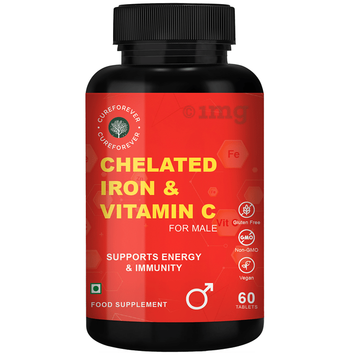 Cure Forever Chelated Iron and Vitamin C for Male Tablet is formulated to help support daily iron needs and improve its absorption with the addition of Vitamin C. This combination may assist in maintaining energy levels, oxygen transport, and immune function in men, without causing gastric discomfort.