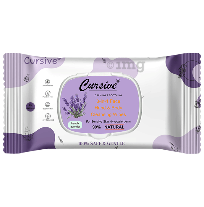 Cursive 3 in 1 Face Hand & Body Cleansing Wipes French Lavender
