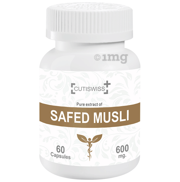 Cutiswiss Safed Musli Capsule is a dietary supplement formulated with 600 mg Safed Musli (Chlorophytum borivilianum). Safed Musli is a herb that may help support overall vitality and energy levels. It may assist in maintaining physical well-being and supporting the body’s natural stamina. Safed Musli may also help support immune function and contribute to general health.