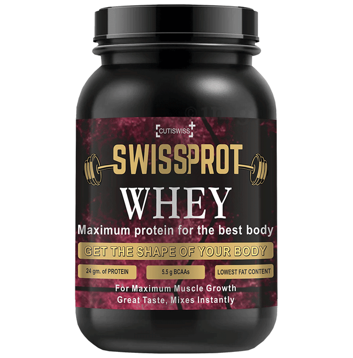 Cutiswiss Swissprot Whey Powder Chocolate is a protein supplement formulated with a blend of Whey Protein Isolate, Whey Protein Concentrate, and Hydrolysed Whey Protein. This advanced formula provides 24 g of protein and 5.5 g of BCAAs per serving, which may help support muscle growth, endurance, and post-workout recovery. With low fat and carbohydrate content, this whey protein supplement is designed for athletes, bodybuilders, and fitness enthusiasts aiming for lean muscle development. It is DOPE-free, helping ensure safety and compliance for regular use.
