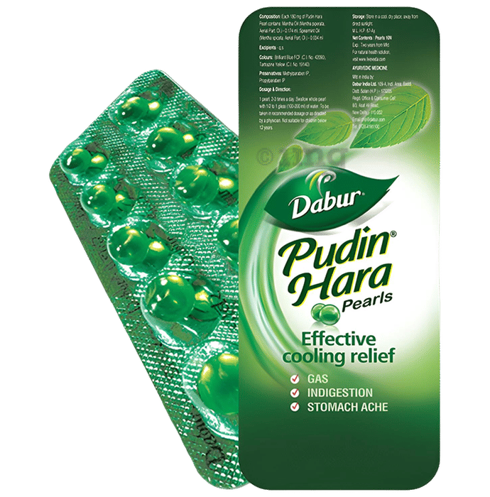 Dabur Pudin Hara Pearls provide immediate relief from stomach ailments. It contains carminative and digestive properties that are beneficial for indigestion and other stomach problems. It has a cooling mechanism that helps with heartburn and stomach discomfort.