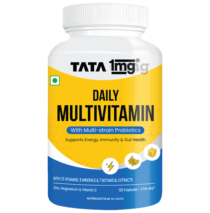 Daily Multivitamin Capsule with 13 Vitamins, 9 Minerals, Probiotics & Botanicals | Energy & Immunity Support | by Tata 1mg